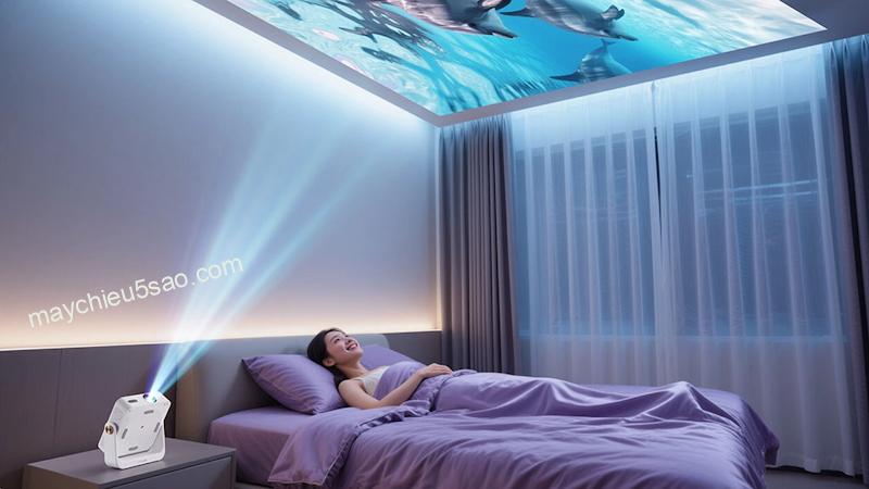 Tự động căn chỉnh theo khung màn chiếu: Nếu bạn có sẵn màn chiếu, máy sẽ tự động co hình ảnh vừa vặn với khung màn, mang lại trải nghiệm chuyên nghiệp.